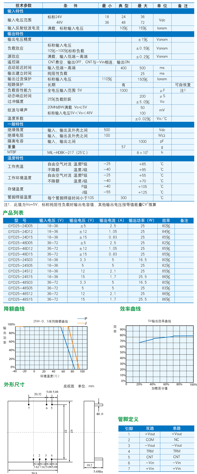 DC/DC模塊電源25W-D、S系列