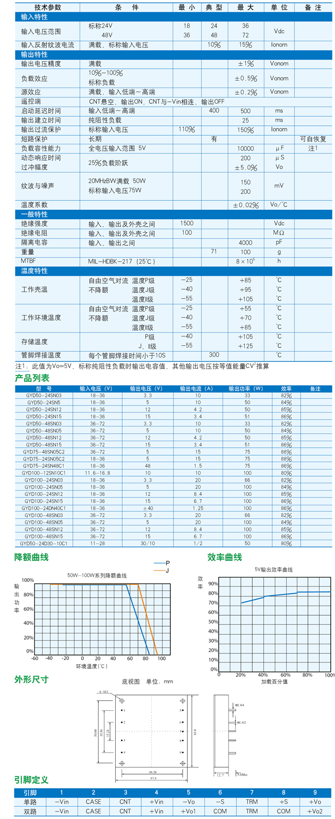 DC/DC模塊電源50W-100W系列