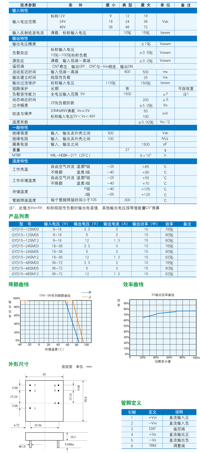 DC/DC模塊電源15W-SM系列