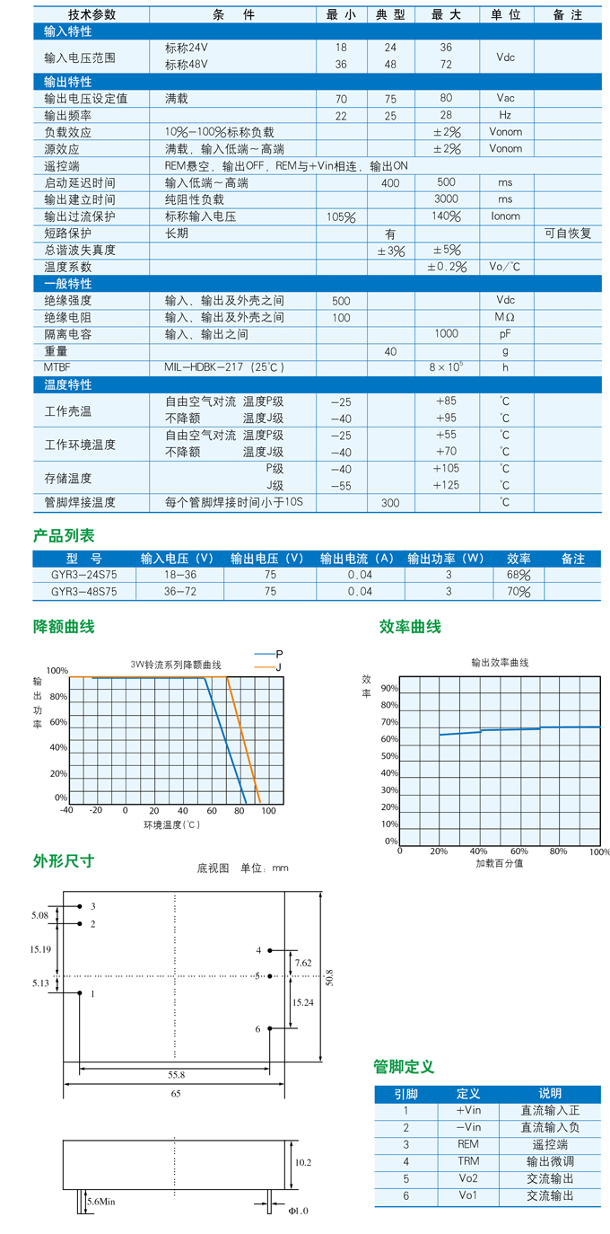 DC/AC模塊電源3W鈴流系列